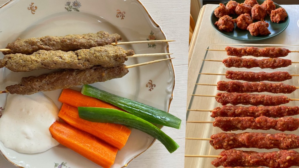 - Lägg grillspetten i blöt (500 g färs räcker till ca 10 spett)