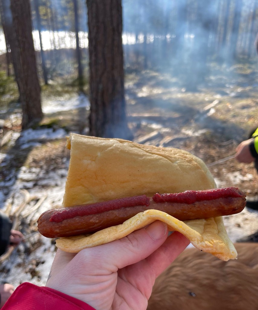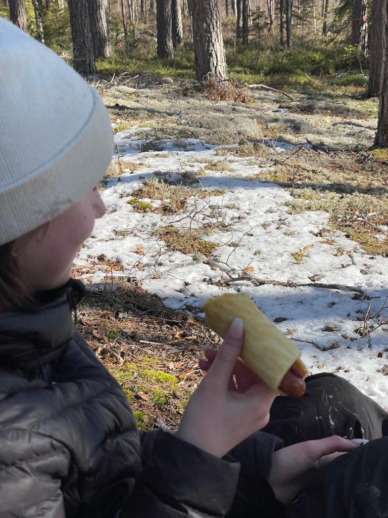Idag blev det en grillutflykt Jag, Andreas (maken, för er som missat att han heter så), vår yngsta dotter och min svärfar gick på skogspromenad med alla hundarna och svärföräldrarnas golden som ytterligare utökning av flocken. Vi hade med oss vad som behövs för att grilla, och när vi kommit halvvägs stannade vi och gjorde upp eld och tog en paus. Vi fick några härliga timmar i en solig skog, med snö och tack vare just skogen kom vi undan vinden som for fram på de mer öppna ställen vi passerade. Ett härligt avslut på sportlovet! Nedan kommer tips på hur det går att minska socker och mjöl på grillutflykter: